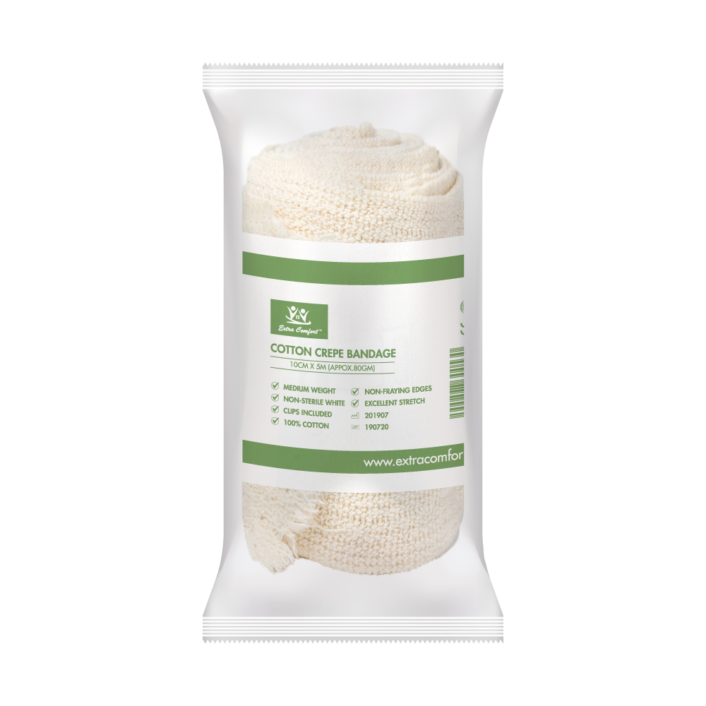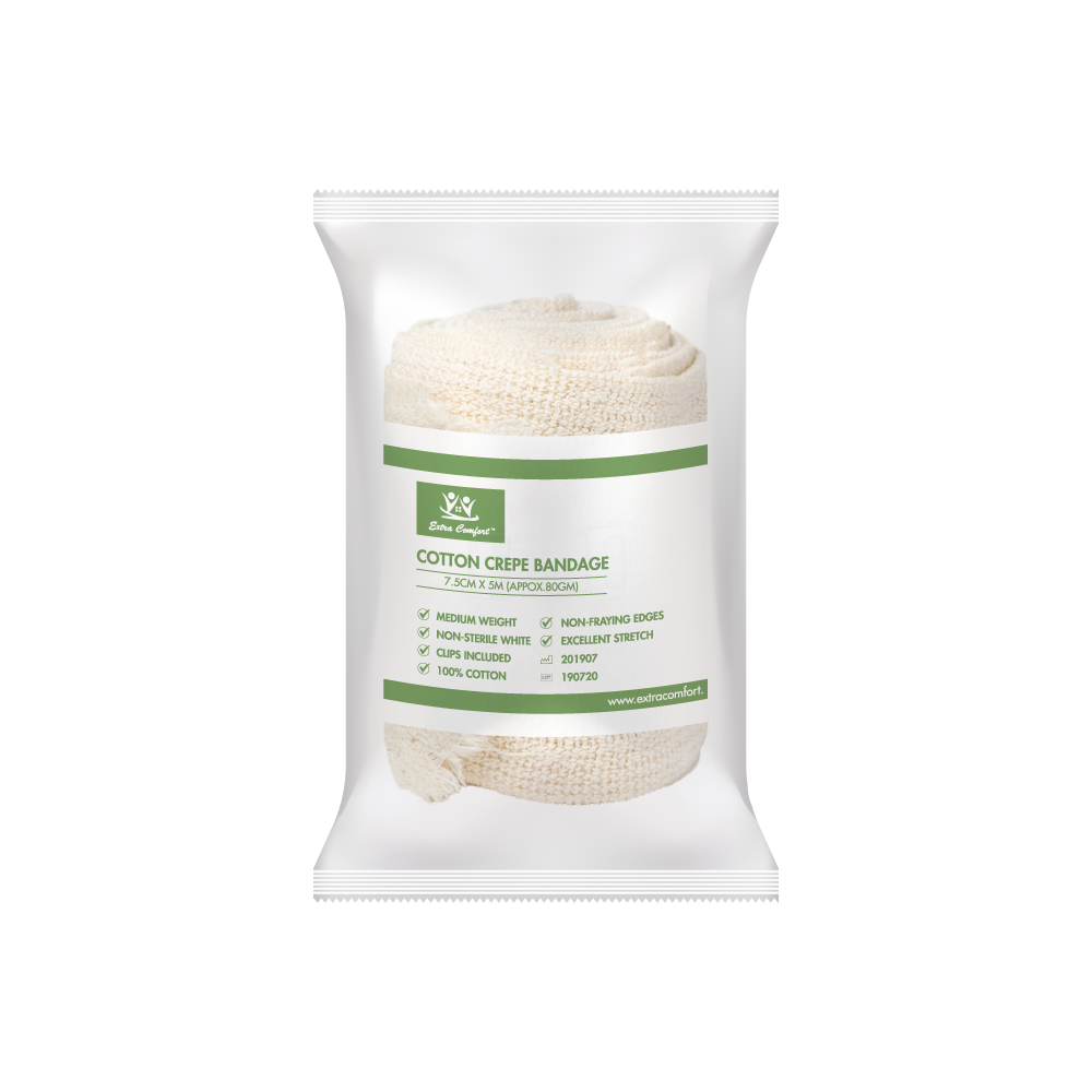 Cotton crepe bandage is a woven elastic bandage. It is best suited for supporting the healing of sprain or strain. It has the ability of elastic that can prevent joints and muscle from flexing.